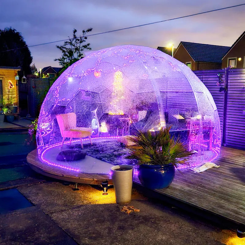 Bring your dome to life—day or night. Effortlessly transform your GeoDomeX into a stunning, atmospheric space with our custom LED lighting kit. Designed to fit seamlessly inside any dome size, this low-voltage system provides soft, ambient illumination that’s perfect for evening entertaining, relaxing, or showcasing your dome in style.
